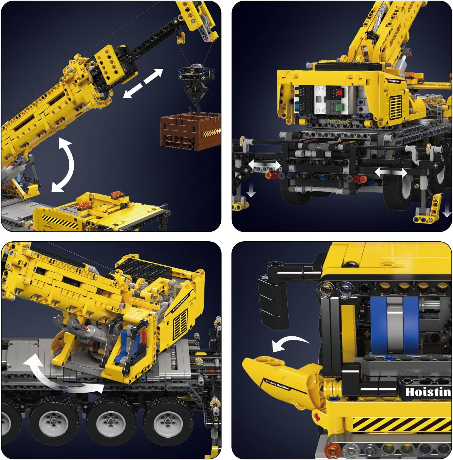 Mit seinen 2688 Teilen ist dieses Modell eine Herausforderung für Baumeister aller Fähigkeitsstufen. Voll ausgefahren beeindruckt der Kranarm mit einer Höhe von 90 cm. Mit den neuen HALL-Motoren und MK CONTROL+ System (Hinweise: Das MK+ System benötigt zwingend die App, die mitgelieferte Fernbedienung funktioniert nur mit den grauen Komponenten).