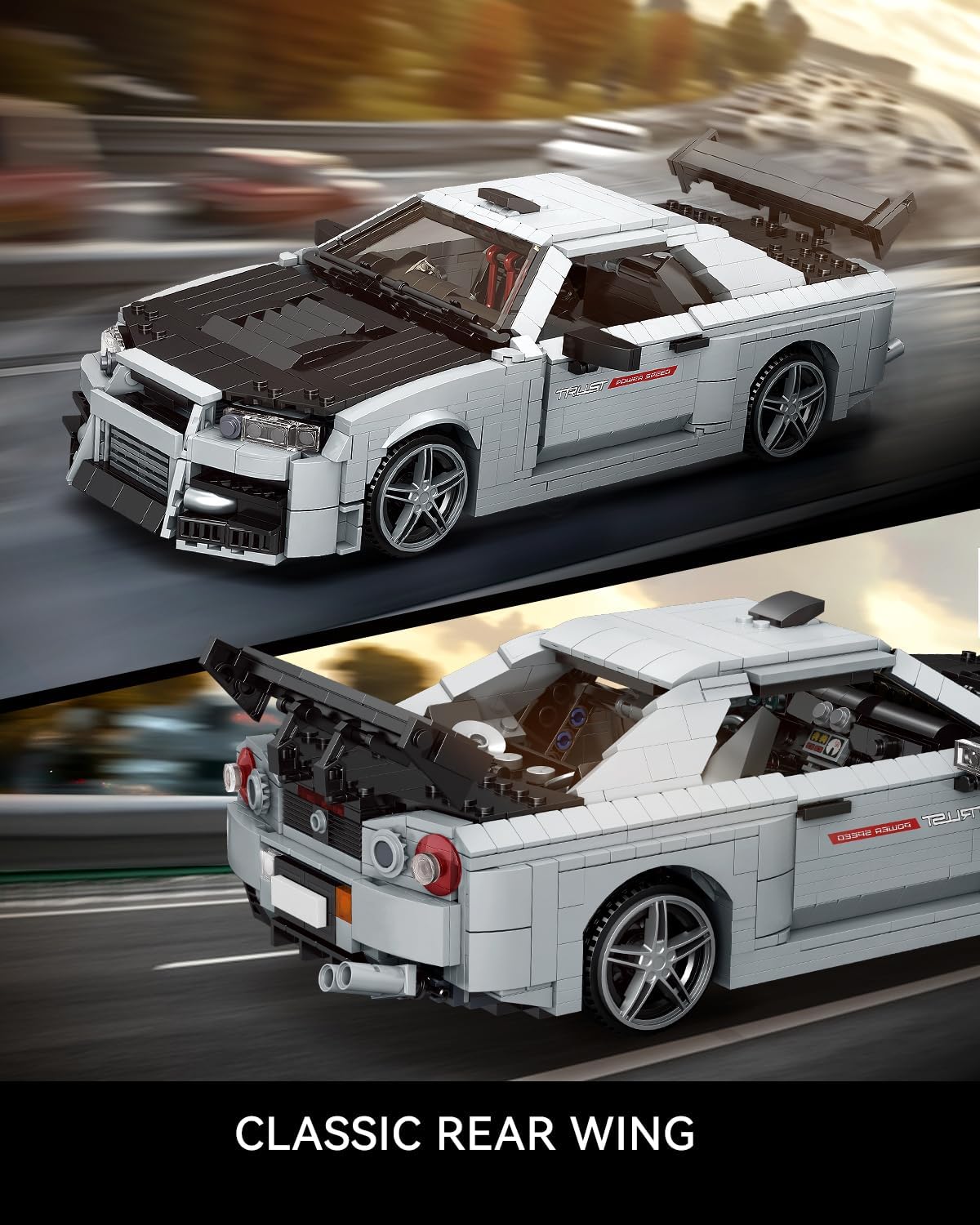 Dieser Rennwagen, angelehnt an das Design des Nissan GTR R35 gehört zu einer ganzen Reihe von Automobil-Sammlerstücken für Erwachsene. Die detailgetreuen Autos sehen erstklassig aus und dürfen in keiner Vitrine fehlen.Sehr gute Qualität der Bausteine.100% kompatibel mit den Klemmbausteinen des Marktführers.Gut verständliche Bauanleitung beiliegend.