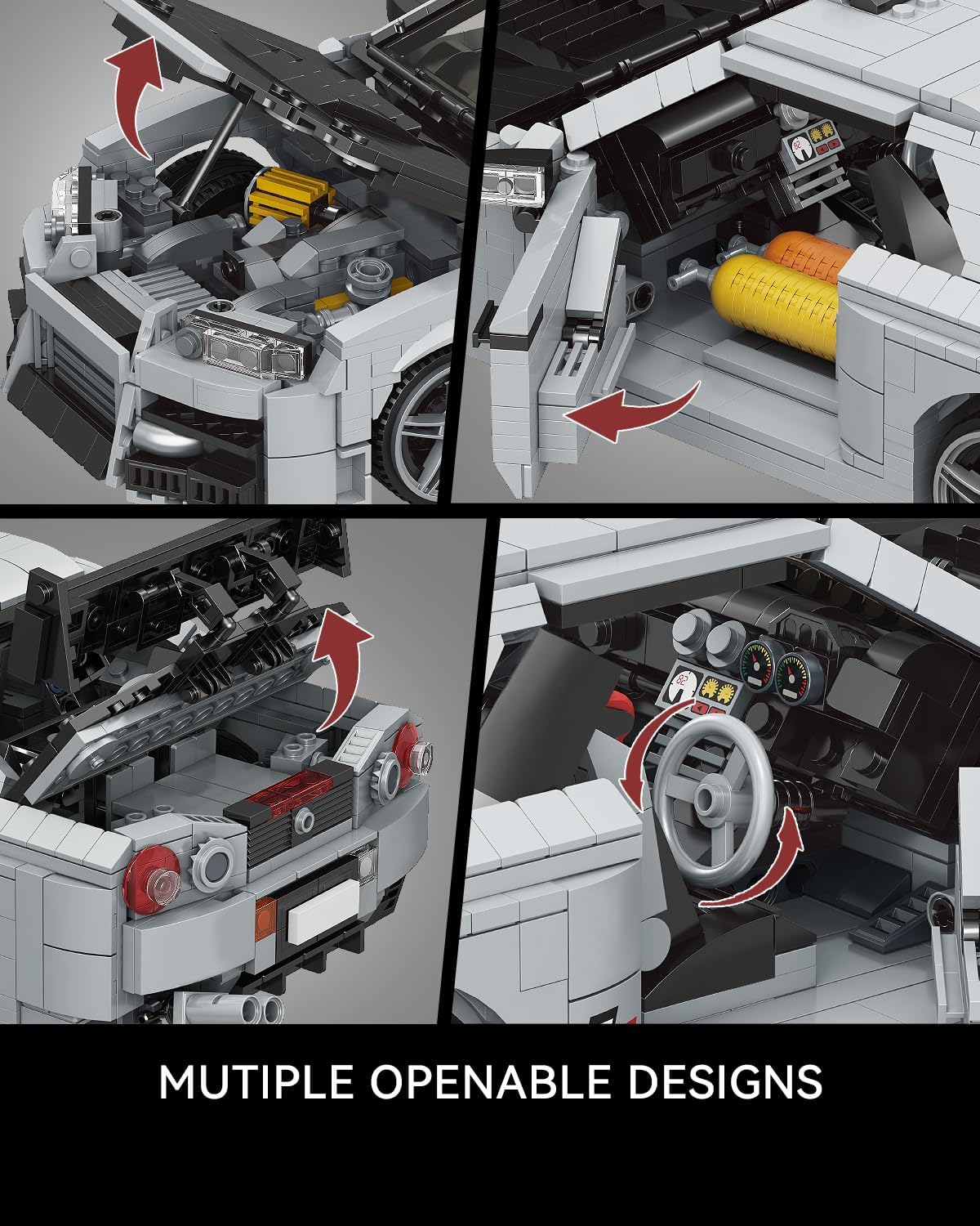 Funktionen: Türen, die Motorhaube und der Kofferraum lassen sich öffnen. Die klassisch grau-schwarze Karosserie-Farbe, sowie die stylischen Felgen und die imposante Motorhaube runden den Gesamteindruck ab. Wie immer bei Mould King sind die Steine nach Bauabschnitten in Tüten vorsortiert und die Anleitung leicht verständlich.