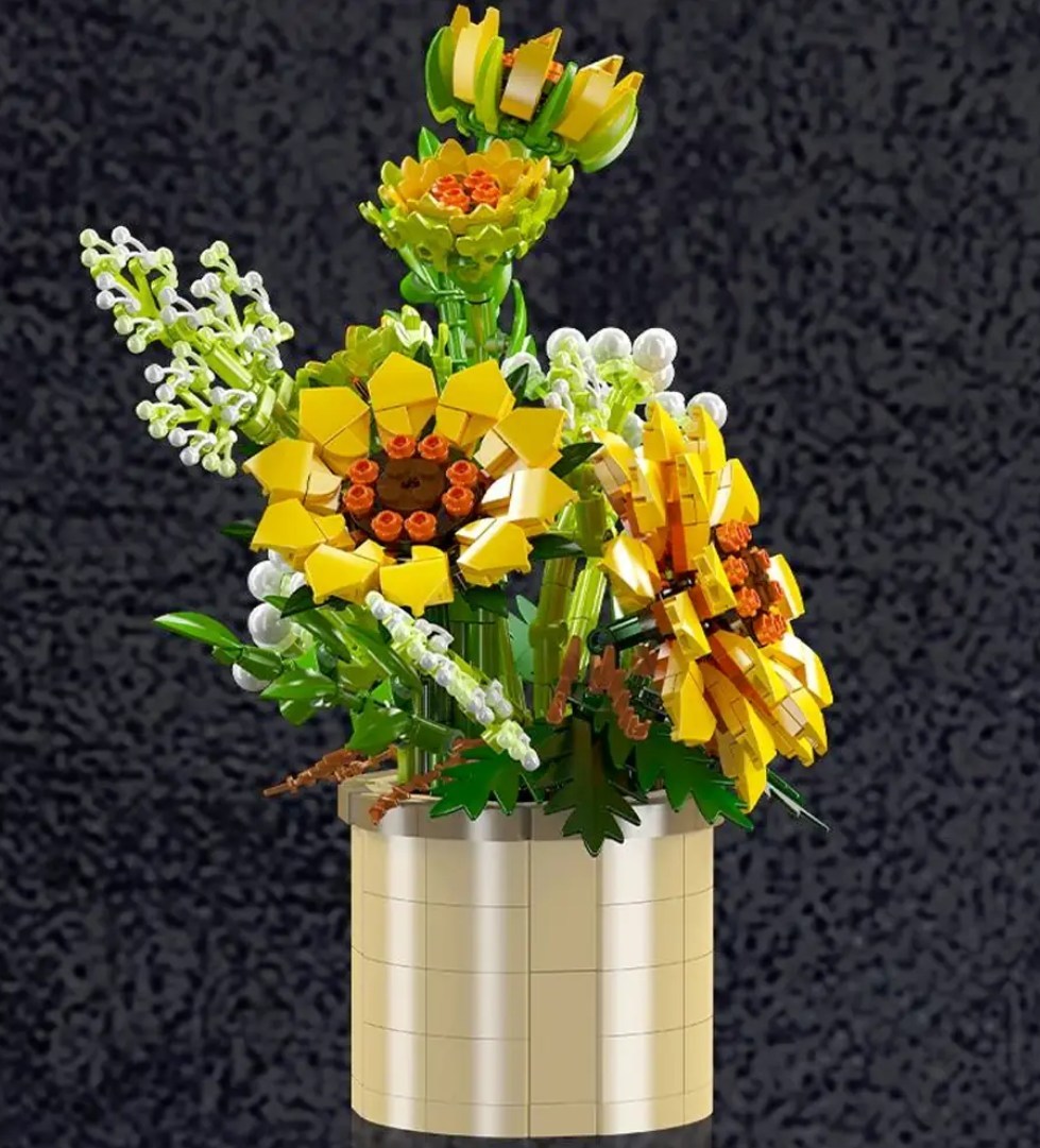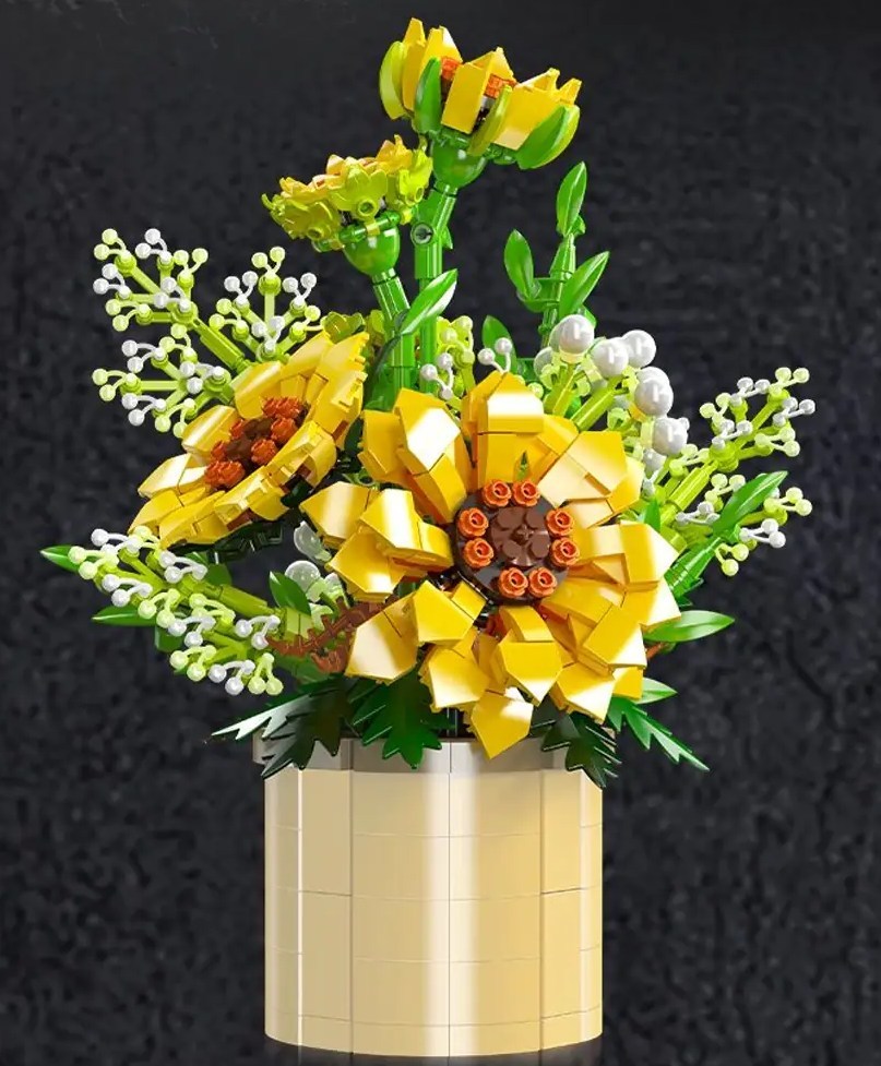 Inspiriert von echten Sonnenblumen bietet dieser Strauß eine lebendige Darstellung von Farben und Formen. Die Blüten und Blätter können frei angeordnet werden. Auch die Länge der Stiehle kann angepasst werden - lass Deiner Fantasie freien Lauf.
