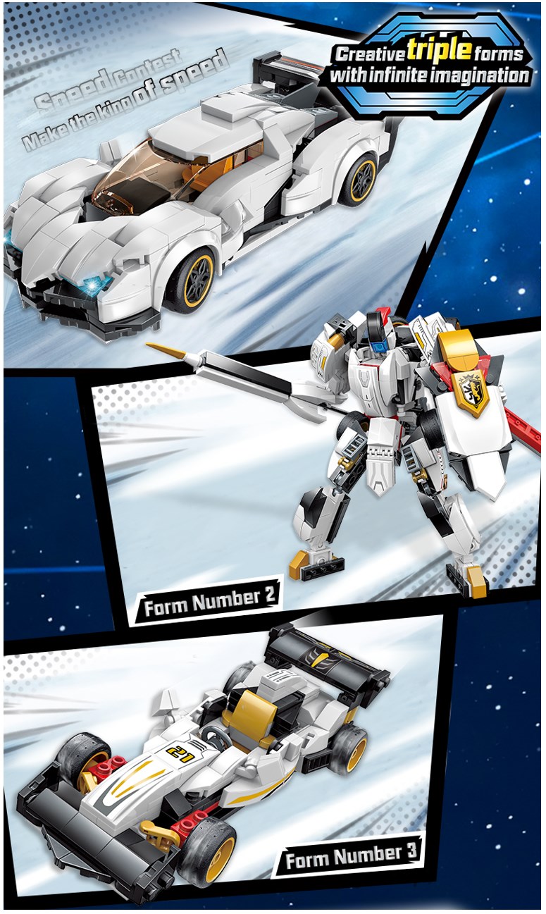 Dieses coole 3-in-1-Set bietet drei verschiedene Bau- und Spielerlebnisse: Sportwagen, Robotor-Mech oder Rennwagen. Es inspiriert zu fantasievollen Spielerlebnissen und ist ein tolles Geschenk für Kinder – zu jedem Anlass.