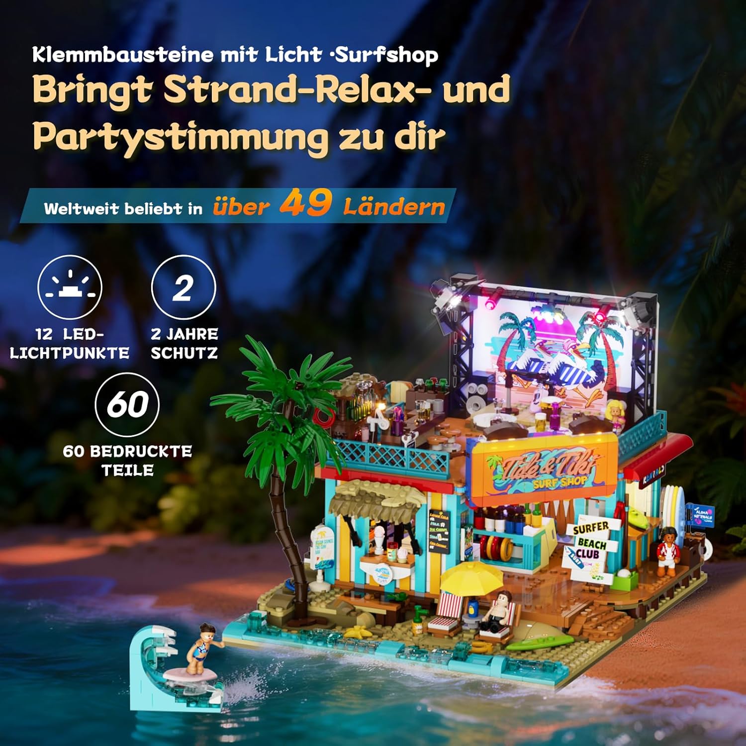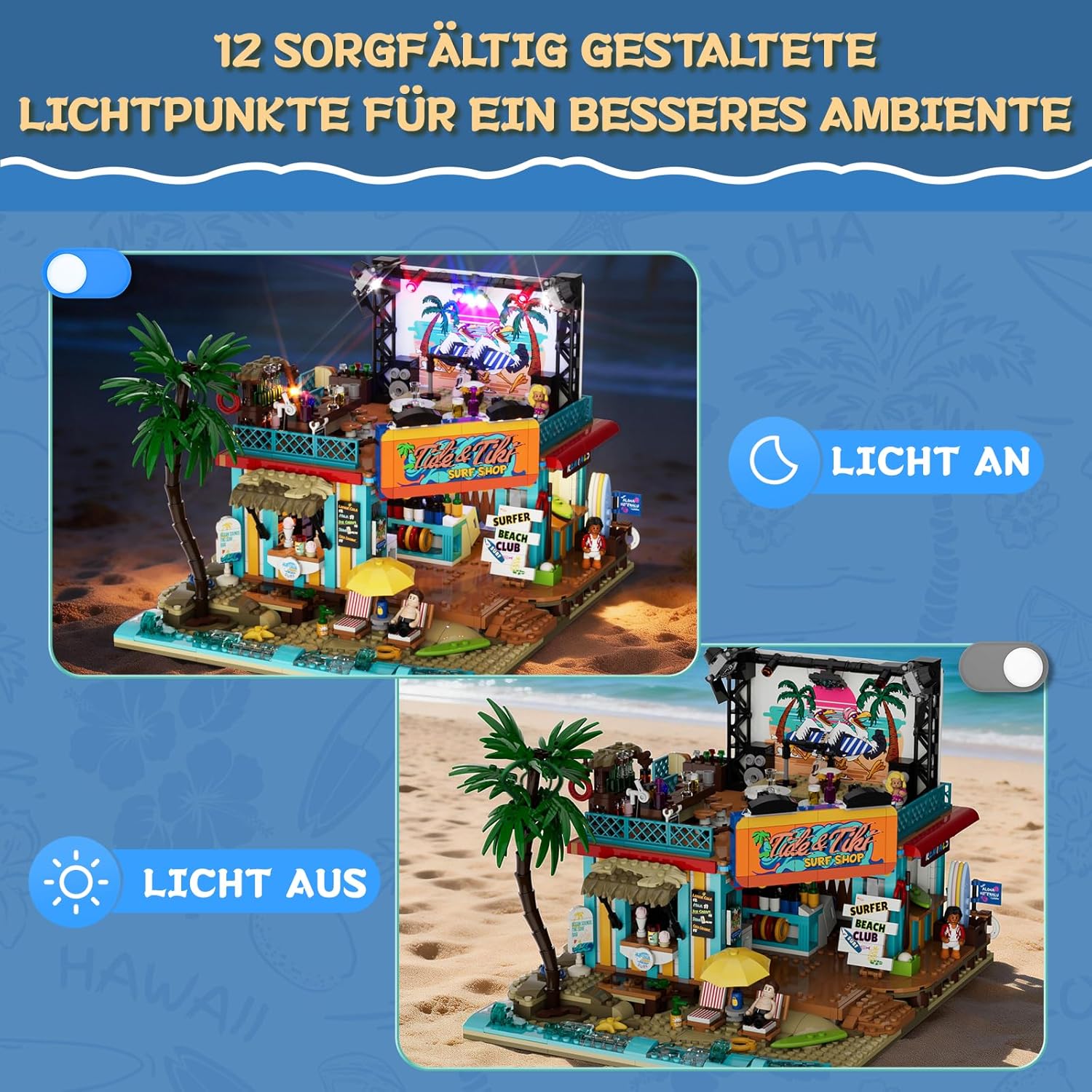 Der Bühnenbereich mit seiner Spotlicht-Konstruktion bringt echtes „Golden Hour“-Feeling auf dein Modell. Hier wirken die Auftritte so, als würden sie genau im perfekten Moment bei Sonnenuntergang stattfinden – warm, stimmungsvoll und ein bisschen magisch. Lichterketten, Spots und Blinklichter sorgen zusätzlich für einen intensiven Nacht-Effekt. So entsteht eine lebendige Küstenatmosphäre, die von entspannten Abend-Vibes bis hin zu kleinen Festivalmomenten alles abdeckt.