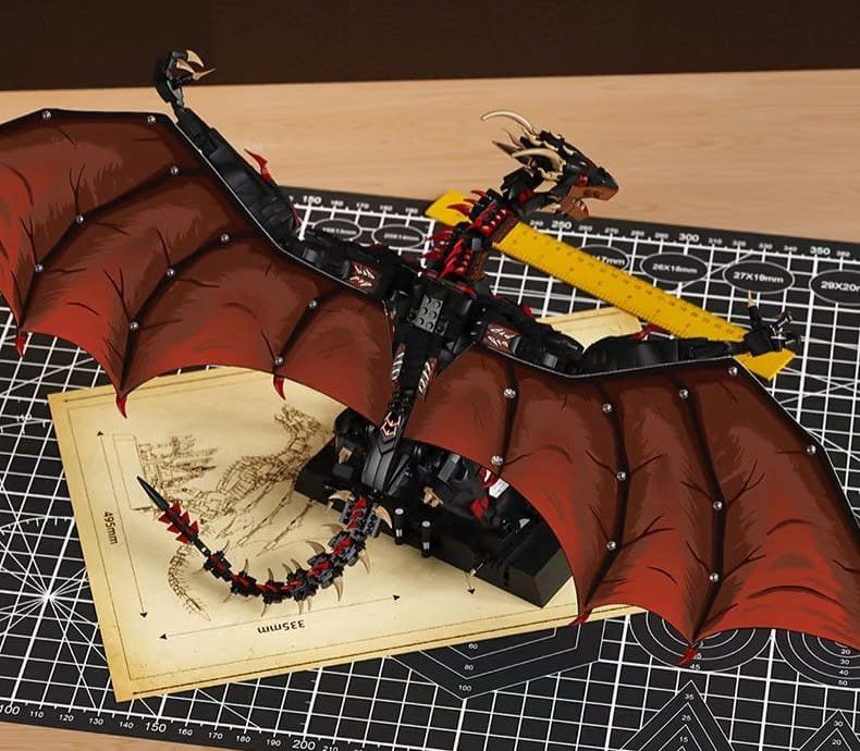 Der fertige Drache ist ein wirklich imposantes und hochgradig bewegliches Modell. Sein Kopf, seine Krallen, Gliedmaßen und sein Schwanz sind mehrfach gelenkig, was eine große Bandbreite an furchterregenden Posen ermöglicht. Ein herausragendes Merkmal sind die bedruckten Drachenaugen und der hochflexible Hals, die dynamische Ausdrücke ermöglichen.
