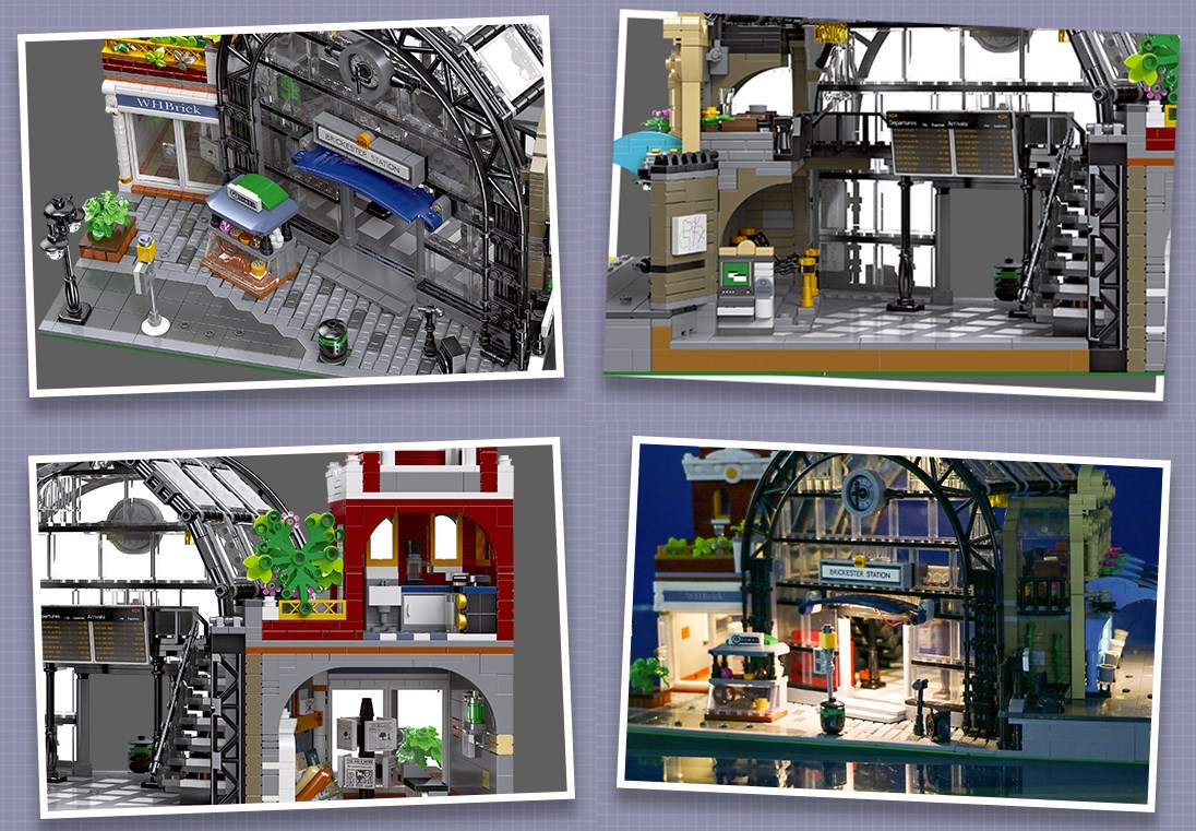 Eine vielzahl überraschender Details und tolle Funktionen erwarten Dich in diesem realistischen Bahnhofsmodell aus über 2700 Klemmbausteinen. Die vollständig transparente Halbkreisform dieses modularen Gebäudes ist einzigartig, modern und charmant, während der Supermarkt neben dem Bahnhof eher in einem klassischen europäisches Design erstellt ist. Eine dezente Beleuchtung sorgt dafür, dass die vielen Details auch im Dunklen gut zur Geltung kommen.