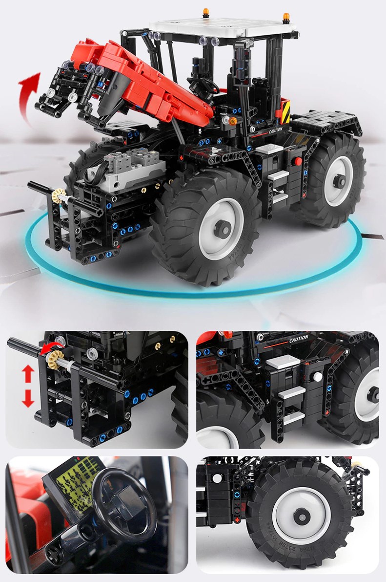 Motorisierter Raupenschlepper mit vielen Funktionen. Vorbild für das Set ist der Challenger der Firma Claas.