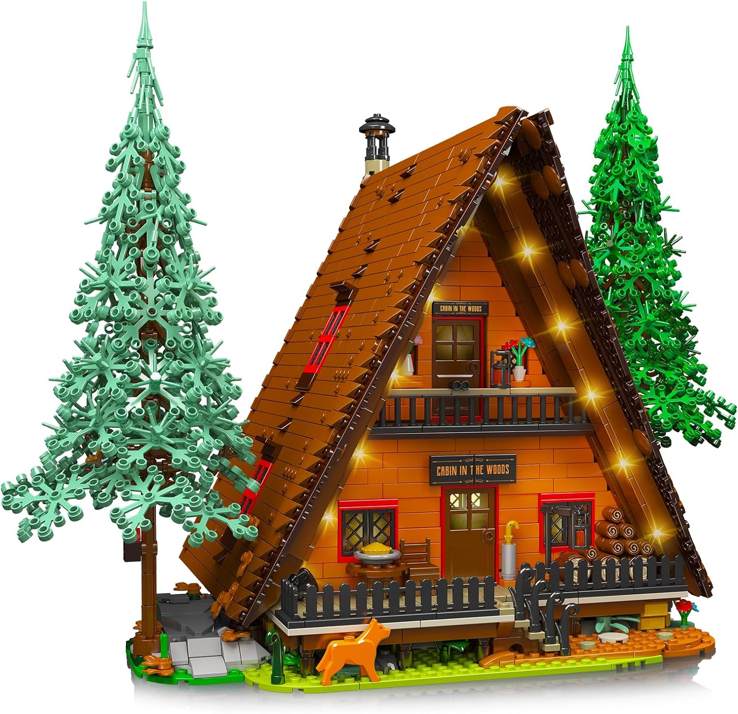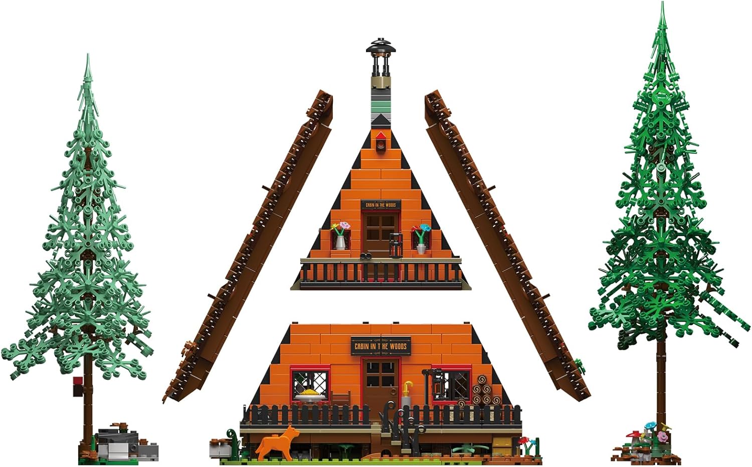 Die Cabin In The Woods von Mould King ist eine grosse Waldhütte und besticht durch das liebevolle Design des Innenraums. Dies zeigt sich in der Verwendung eines Hirschs im Schornstein und eines Hundes im Boden als Designelement für Wanddekoration und Teppich.